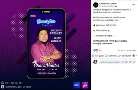Fig. 6. Chaca Walter, publicitando un “virtualito” vía Facebook.