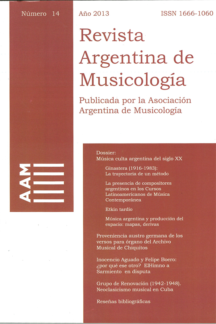 Núm. 14 (2013)Dirección: Comisión Directiva de la Asociación Argentina de Musicología
